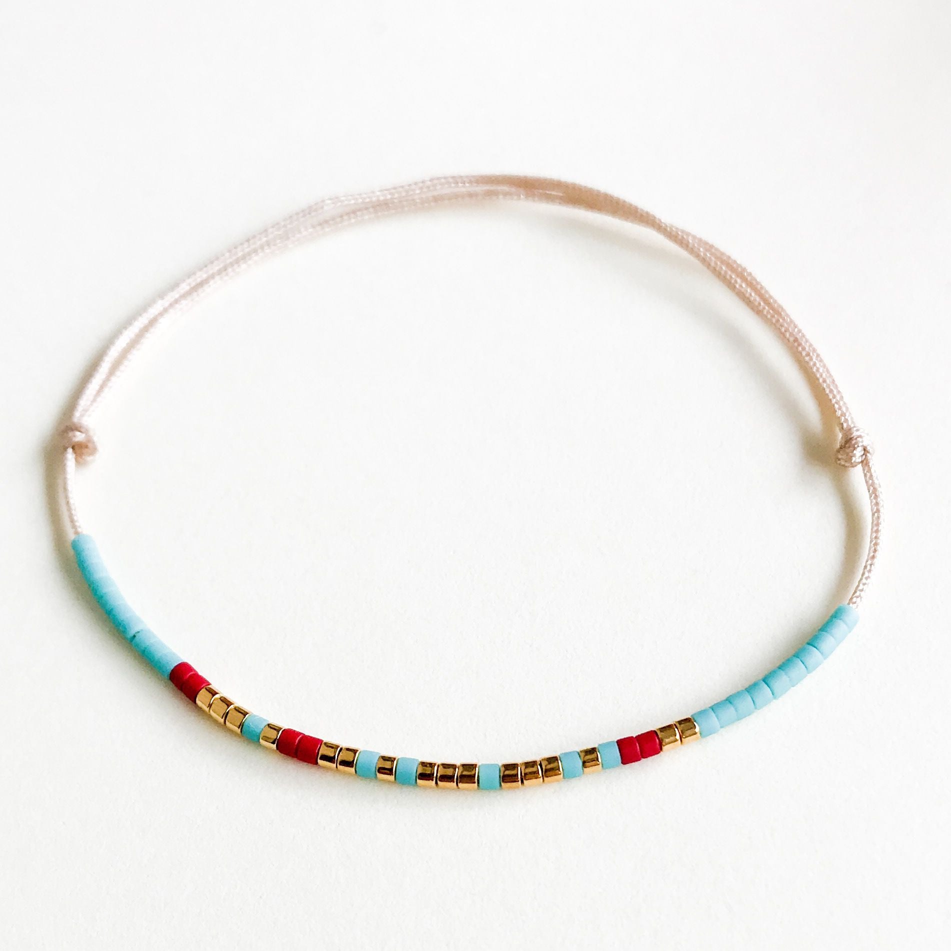 Materiale: margele Miyuki (dimensiune 1,6mm), colorate si placate cu Aur 24K si snur de matase