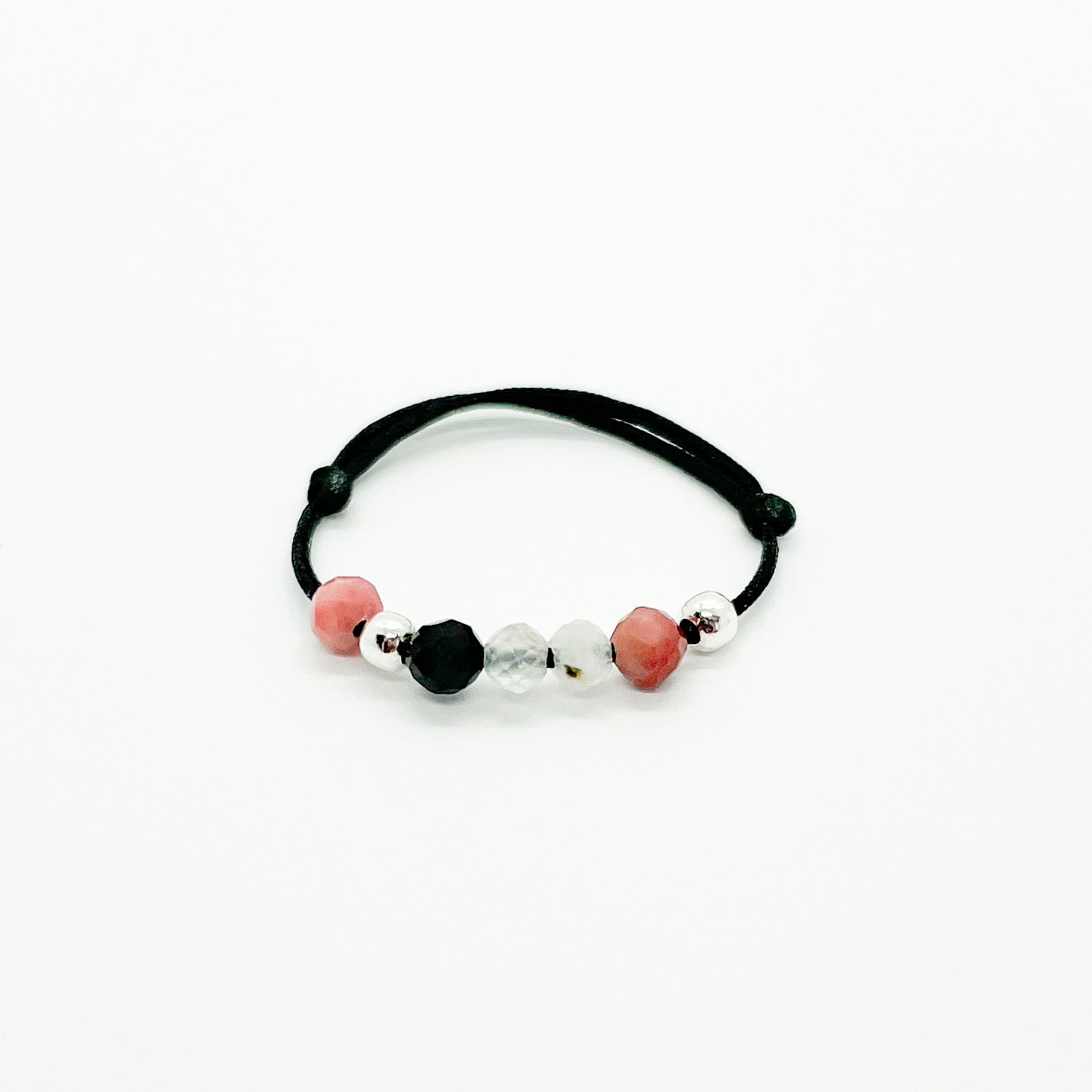 Materiale: pietre semipretioase (Rodonit, Piatra lunii, Turmalina) 3mm, Argint 925 (dimensiune 2mm) si snur de matase